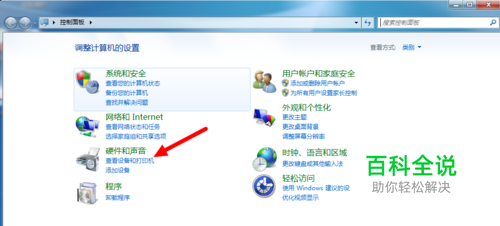 在控制面板中有一项是“查看设备和打印机”,单击打开。如图。