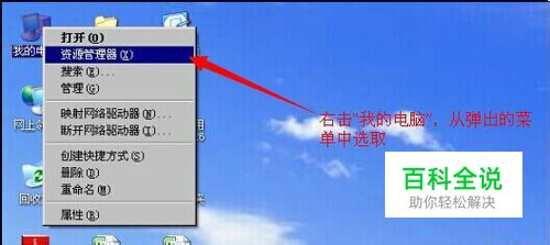 用鼠标右击“我的电脑”,或“我的文档”,或“网上邻居”,或“回收站”等图标,然后从弹出菜单中选取