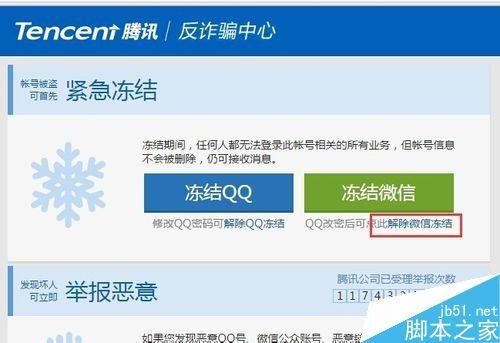 密码修改成功了,在返回http://110.qq.com,选择 解除微信解冻