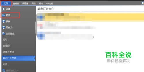 在点击“文件”,切换到文件菜单后,点击“打开”按钮。将会弹出一个文件选择窗口。