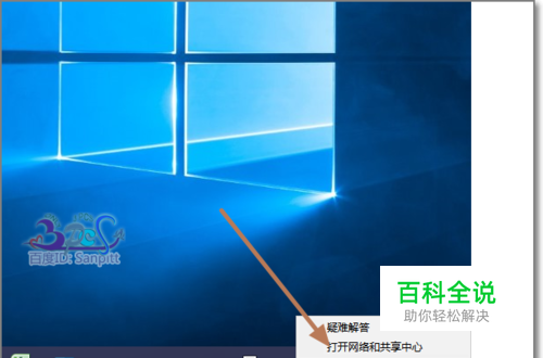 在右键功能菜单中,选择打开网络和共享中心。