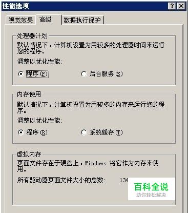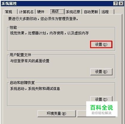 在我的电脑右键-属性-高级,在性能区域内点击设置打开性能选项窗口