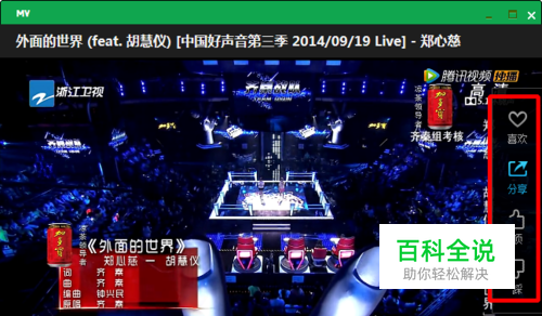 打开QQ音乐播放器,找到喜欢的好声音MV--比如火爆的《外面的世界》