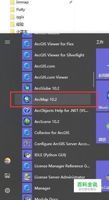 打开开始菜单,点开ArcGIS文件夹,找到ArcMap并点开。