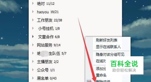在好友管理器中选择需要批量删除好友所在的分组,点击分组就可以在右侧批量选择好友了。