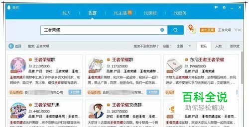其中,当使用默认排序方式进行搜索时,搜索结果由系统随机进行展示,展示出来的搜索结果,按照 已成功认证的群、同城群、非同城群的优先级别从高到低的顺序来依次展示。