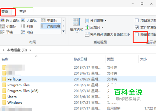 查看“查看”->"隐藏的项目",如果没有勾选,则先勾选,此时ProgrameData文件夹就会显示出来了