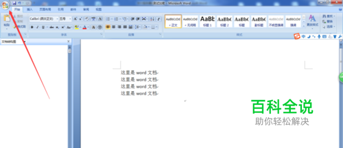 首先打开你要加密的word文档,找到左上角的“office图标”按钮,如图所示。