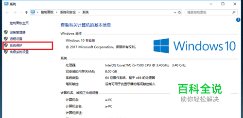 第二步进去属性界面之后,点击系统保护,如下图所示:
