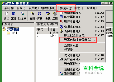 [菜单栏]找【数据库】-【账套自动批量备份(X)】;