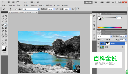 如何用PS设置图层调整黑白去色