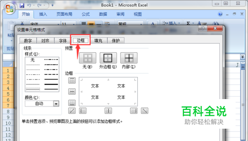 在设置单元格格式窗口,选中“边框”选项卡,点击进入。