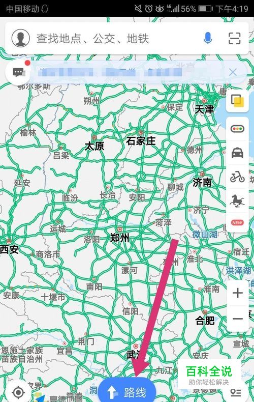 首先,打开高德地图,点击下方的【路线】。