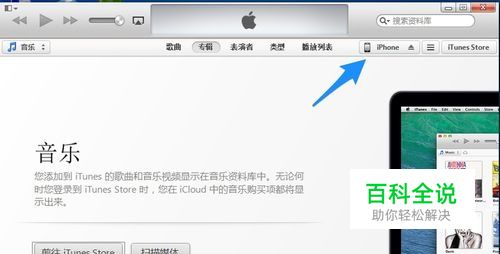 把手机与电脑连接起来,打开 iTunes 软件,点击窗口中的 iPhone 图标,如图所示