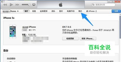 随后在 iPhone 的管理界面点击顶部的 “照片”栏目,如图所示