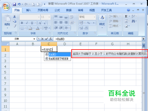 在单元格中输入函数“=RAND()”(如图);