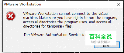 vmware 开机时候出现这样,小编先给大家翻译一下。 Mware工作站不能连接到虚拟机。确保你有权利运行程序,程序使用访问所有目录,访问所有临时文件目录。 VMware授权服务没有运行。
