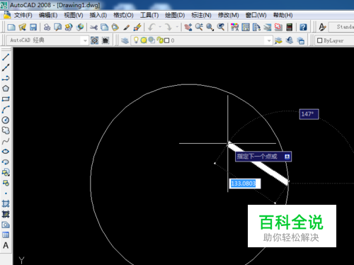 点击与起始点对称的圆上另一点。
