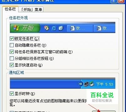 在任务校栏里点击右键,然后点击“属性”如图 这些都是在任务栏里显示的常规项,只要你选勾起动时就会在任务栏里显示。