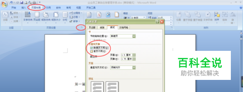 打开需要编辑的文档,在“页面布局”中打开页面设置,点击“奇偶页不同”。