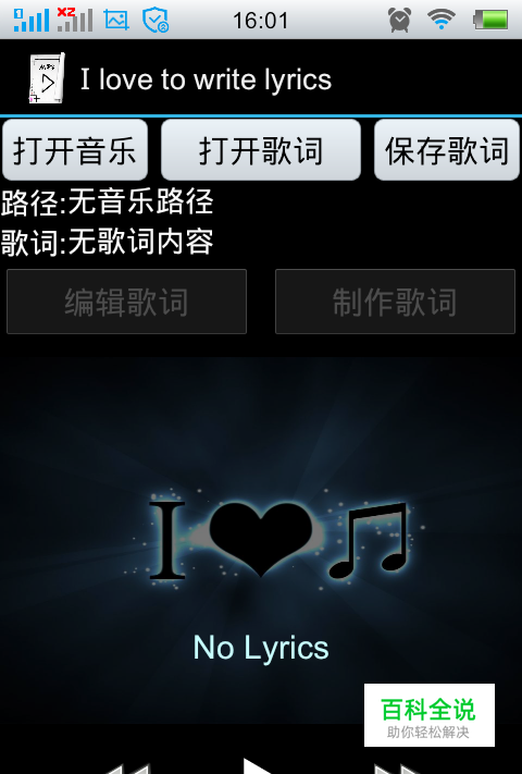 从手机软件市场下载安装一款叫做“我爱写歌词”的手机软件。软件大小785KB