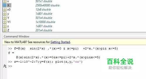 然后我们介绍下匿名函数f=@(x) sin(2*x) 此时我们就定义了一个sin(2*x)函数。