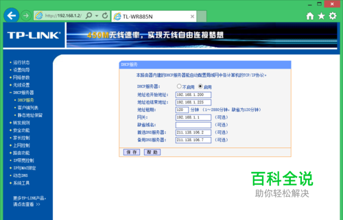 记好后,我们打开副路由的管理页面,找到“DHCP服务器”,勾选“启用”。将副路由DHCP的地址池设置成与主路由的没有交集的状态 例如我的主路由是192.168.1.100到192.168.1.199 那么副路由可以是192.168.1.200-192.168.1.225 “地址租期”默认不用填。 “网关”填写刚才记得主路由的LAN口ip “缺省域名”默认不用填。 “首选DNS服务器“和”备用DNS服务器“填刚才主路由的DNS服务器 如下图:
