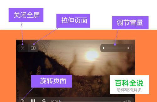 在播放页面上有很多功能快捷按键,用来方便用户在观看电视时更方便,观看体验度比如快进、后退、暂停、音量调整、旋转页面、全频播放等等,一起来认识一下吧,具体位置和按键功能如下图所示。