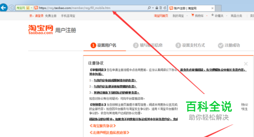 在“淘宝用户注册”中,点击“同意协议”即可进入下一步。