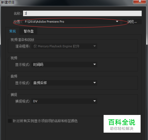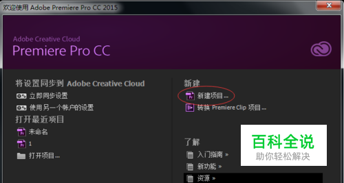打开Adobe Premiere PRO CC2015的软件,【新建项目】,输入项目【名称】,选择好项目存档的【位置】