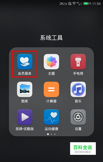 首先,将手机联上网,在桌面图标中找到“会员服务”,点击打开。
