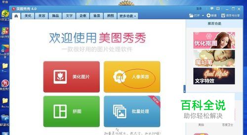 首先我们要打开美图秀秀,如下图所示,点击“人像美容”