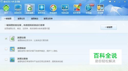 通过金山卫士、360软件的软件管家清理垃圾。一键清理 用起来简单方便