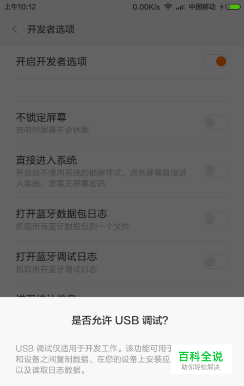 首先,打开手机设置里面的USB调试功能。