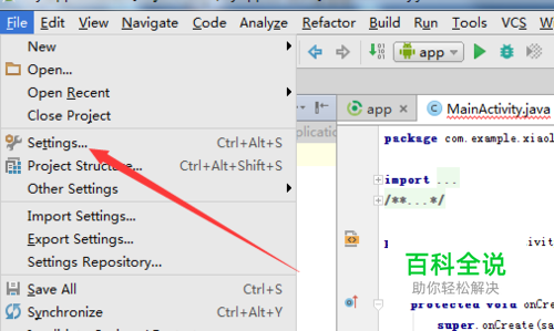 进行点击android studio菜单中file的选项菜单。