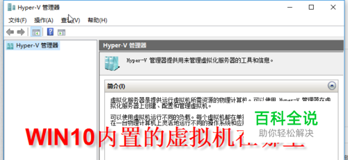 玩电脑的人经常需要一个虚拟机来测试软件,WIN10系统自身是带有虚拟机,该虚拟机叫Hyper-V,但是很多人都不知道哪里,不知道怎么用。下面就跟小编看一下怎么打开自带的虚拟机。