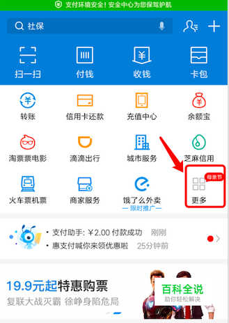 首先,手机得保证安装了支付宝APP。打开支付宝,点击界面上的按钮【更多】,然后找到应用【蚂蚁森林】。