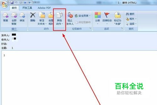 打开这封邮件后我们可以对这封已经发出的邮件进行一些操作,我们点击菜单栏上的“其他动作”。