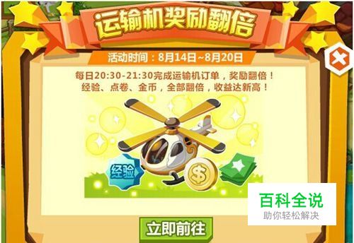 1 进入活动页面,了解活动基本情况。时间为这几天的晚上8:30到9:30,奖励为订单奖励翻倍(金币,经验,点卷)