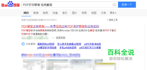 打开浏览器后,于搜索栏搜索_PDF在线去除限制_关键字。在相匹配的搜索结果中,找到合适的单击进入。