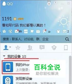 打开电脑QQ的主界面 找到联系人列表下的“我的设备” 点击 展开“我的设备” 如下图,会看到“我的iphone”