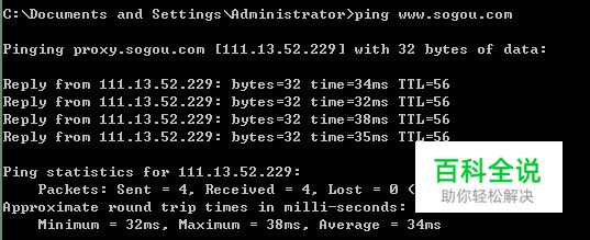 首页无法打开的话,httpwatch只显示www.sogou.com链接一直加载到显示错误,首先ping下www.sogou.com如果能通说明网站是没有问题的,因为网站能打开所以可以ping通,如果网站不能打开ping的网站能ping通可能该网站还有其他地址。通过下图解析得到有2个ip地址,说明有2个服务器地址,其中一个不通可能导致网站无法打开,将无法打开的服务器地址处理就能正常打开,如果是网络原因可以将此ip地址优化处理。