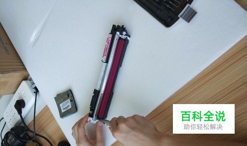 找到相对应颜色的粉盒,小心添加 , 到最后 左右摇摆一下 硒鼓,弄平整粉墨即可
