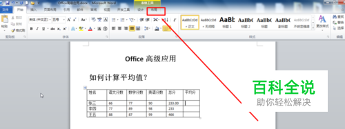 打开Office Word文档,输入表格数据,然后点击菜单栏中的布局菜单,如图所示: