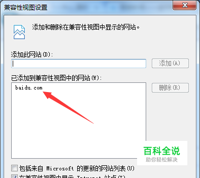 这样就会弹出了一个兼容性视图设置的窗口,直接点击 添加 的即可。