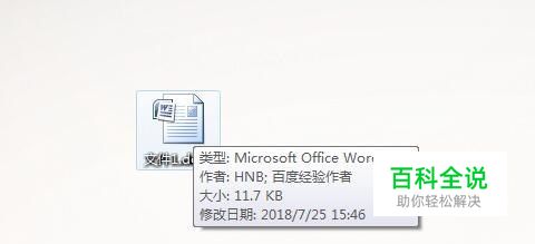 首先我们将鼠标放在桌面上任意一个文档,都会出现文档的类型、作者、大小及修改日期。如图