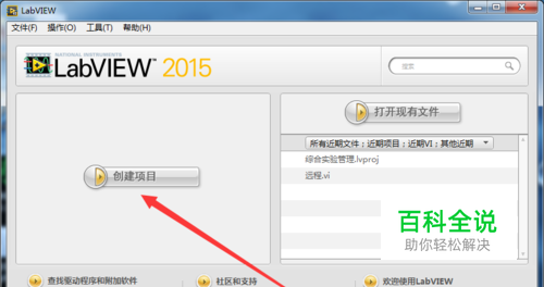 我们前期最好使用中文版labview,因为英语水平实在是受限,我们先打开labview,打开之后我们可以看到一个主界面,我们点击左侧的创建项目。