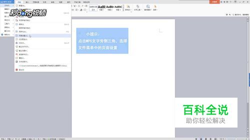 下拉菜单中选择“文件”,扩展菜单选择“页面设置”。