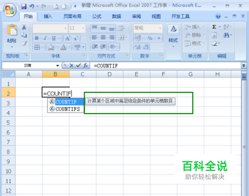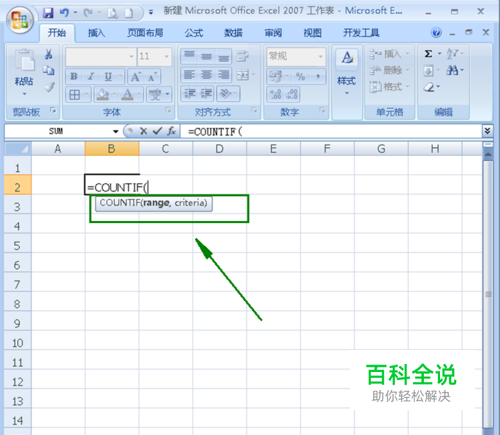 COUNTIF函数的公式:=COUNTIF(range,criteria),range表示单元格区域,criteria表示指定的条件(如图);