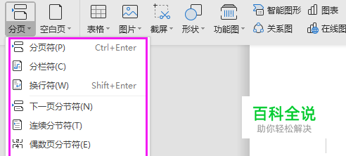 现在最新版本的WPS三合一中,只有【插入分页符】,删除目前是没有的,如图。